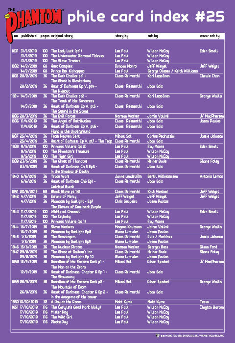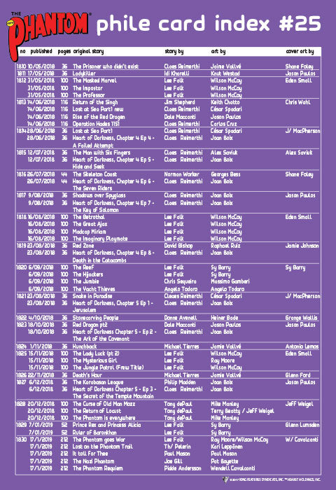 Complete your philecard binder with this index page. The index contains additional information about the comic on each philecard.