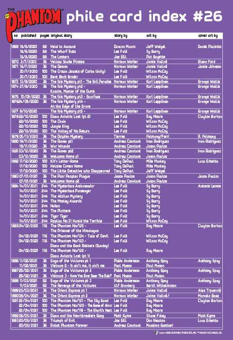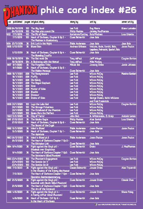 Complete your philecard binder with this index page. The index contains additional information about the comic on each philecard.