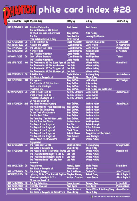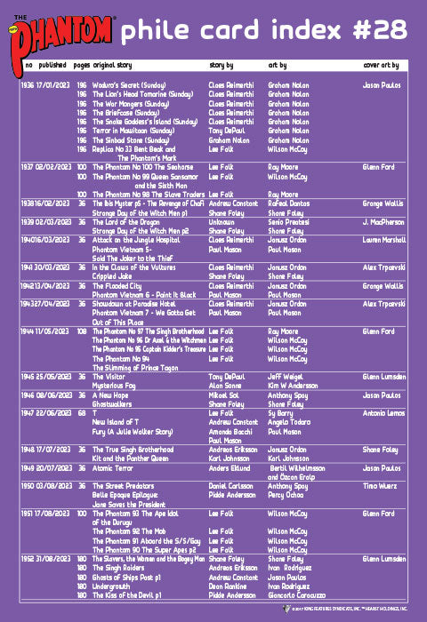 Complete your philecard binder with this index page. The index contains additional information about the comic on each philecard.