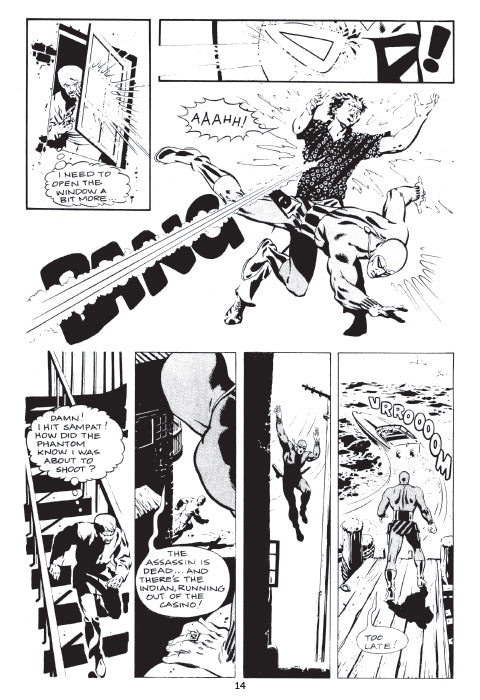 “The Devil’s Brotherhood, Part 3: The Final Battle” is a 1984 Team Fantomen story, written by Idi Kharelli and illustrated by Hans Lindahl. This is the final part of the classic drawn by Hans Lindahl, whose atmospheric and striking drawings have earned him a legion of Phantom Phans across the globe.