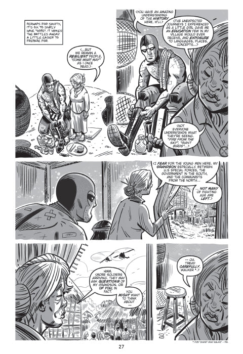 Filling out the book is another wonderful episode of Phantom Vietnam #12, “I Chop it Down with the Edge of My Hand,” supported by an evocative Vietnamese village scene back cover by Paul Mason.